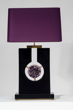 One of a kind Studio Built Pair of Table Lamps in Black resin Crimped Ametist sphere by Stan Usel.