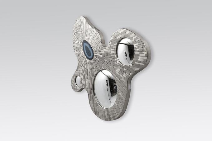 Created to measure by Stan Usel, this mirror in mosaic stainless steel, 3 convex glasses and agate gemstone. Do not hesitate to ask us the different models, already executed. Form Exceptional craftsmanship with the art of tailor made furniture. This original and unique pieces are signed by the artist and comes with the certificate of authenticity.All pieces can be custom-made to order. Proudly Belgian.